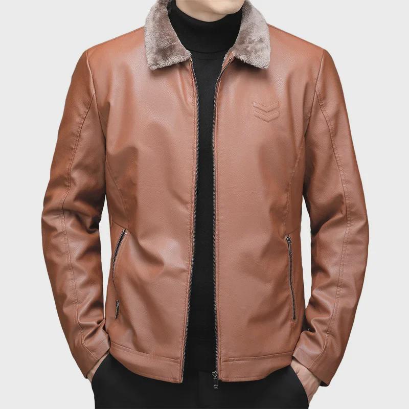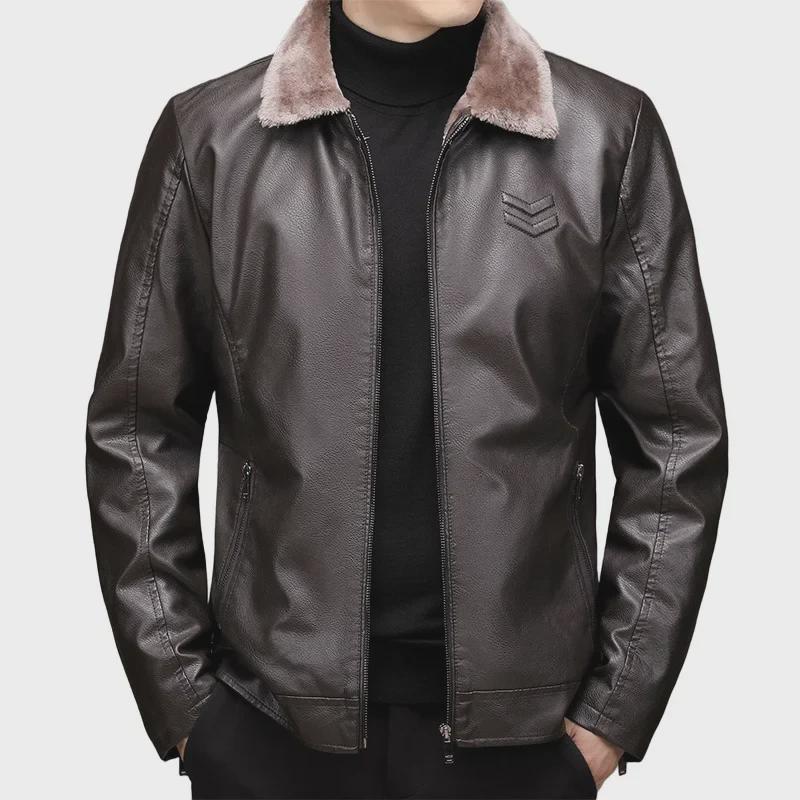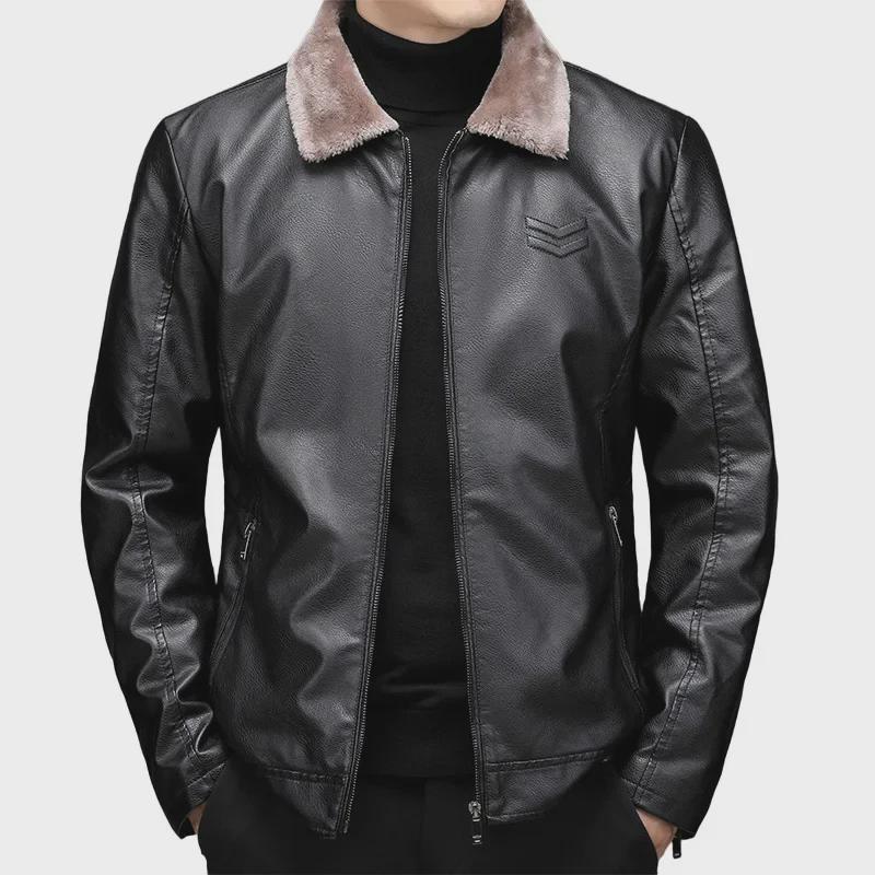 Мужская облегающая кожаная куртка с бархатной подкладкой 2024 года на осень/зиму