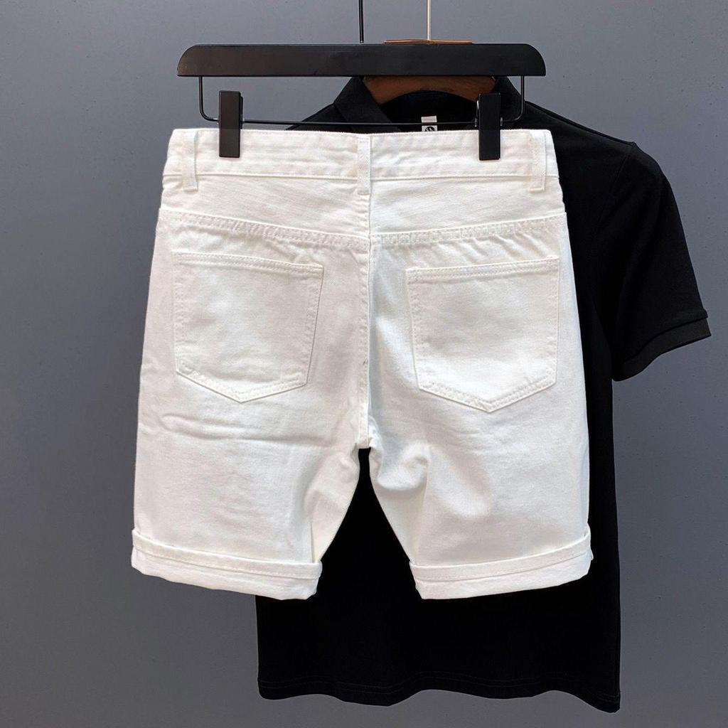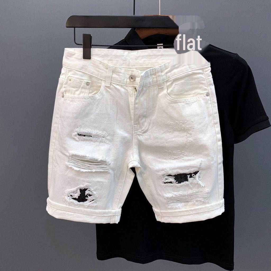 Мужские модные белые джинсовые шорты с потертостями и деталями в виде кошачьих усов