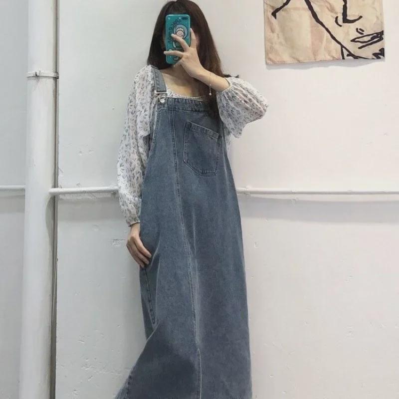 Женская джинсовая юбка-комбинезон свободного кроя в стиле ретро — купить товар онлайн с бесплатной доставкой по всему миру!
