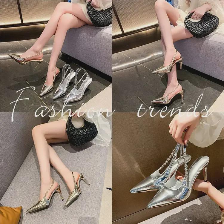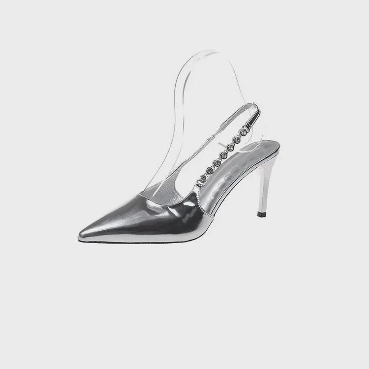 2024 Серебряные туфли на шпильках с заостренным носком - Элегантные женские босоножки