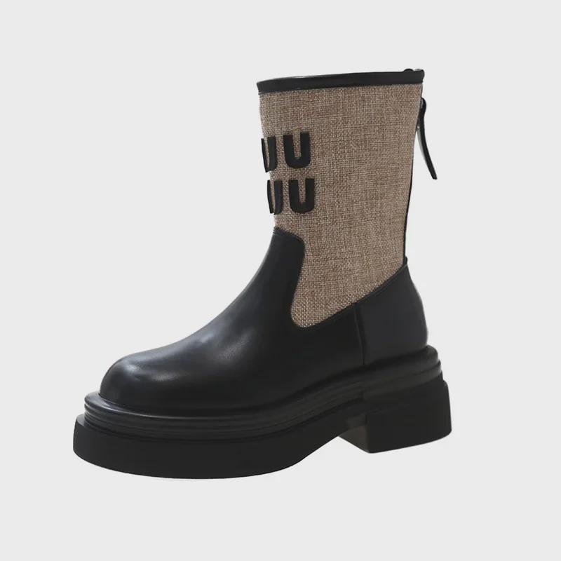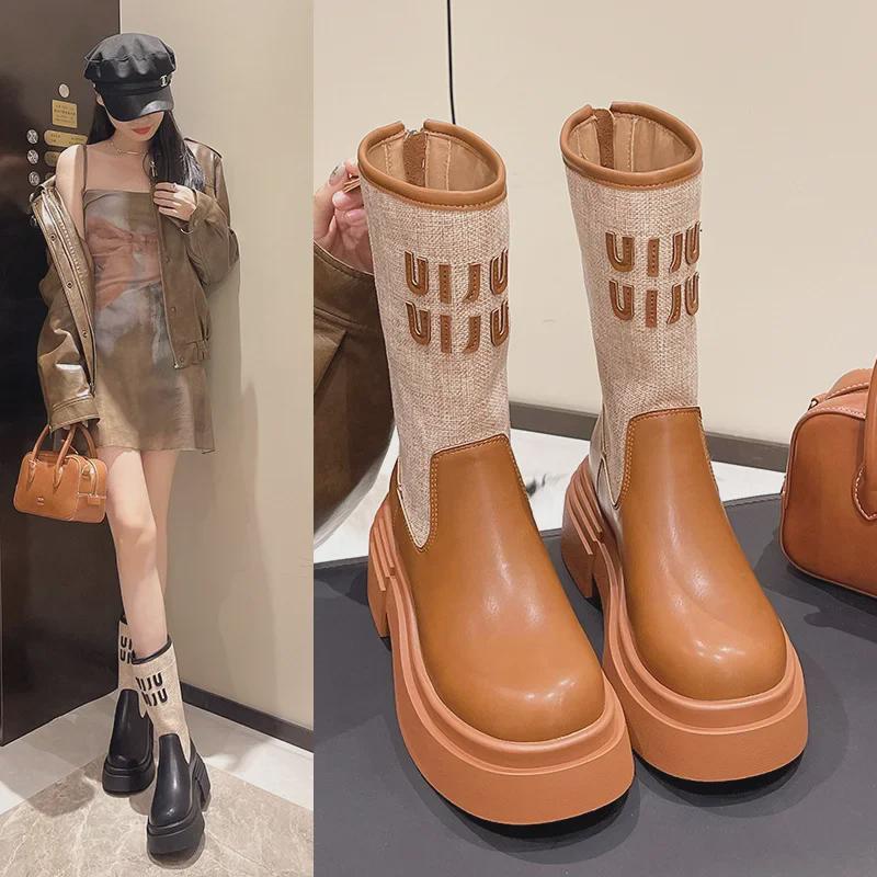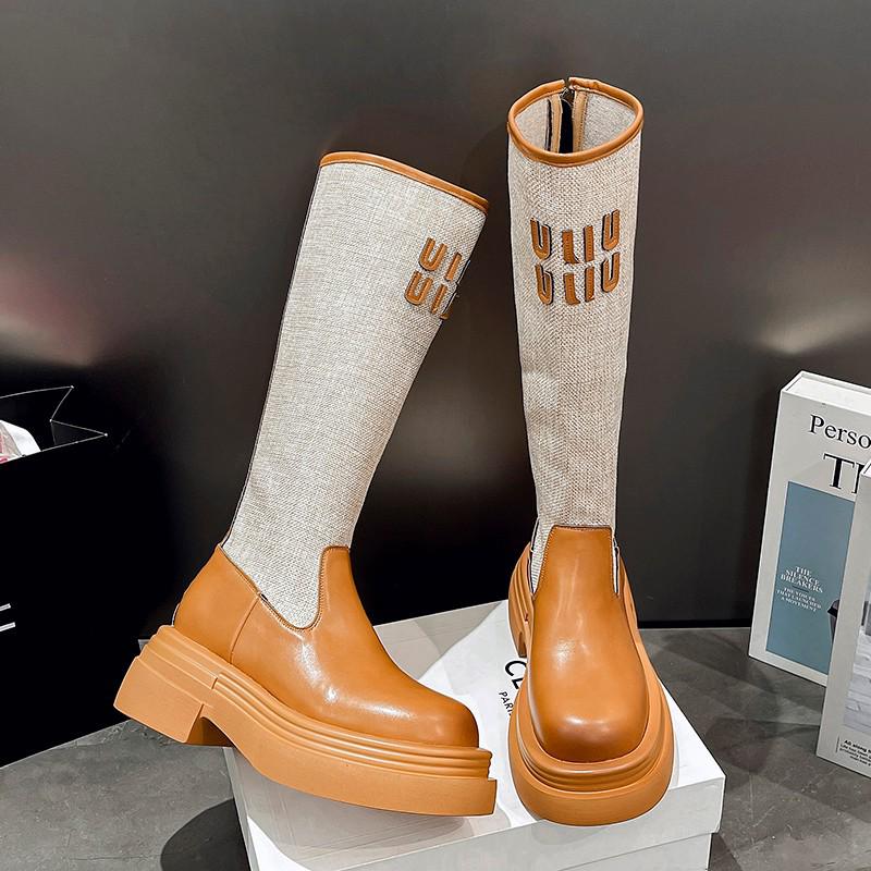 Женские сапоги до колена с цветными блоками и толстой подошвой, новый стиль 2024 года