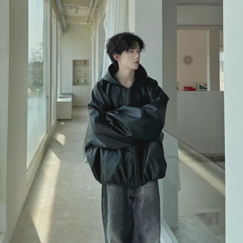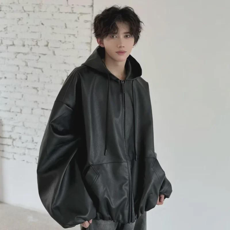 Мужская гоночная куртка из искусственной кожи с капюшоном для мотоциклистов – модный американский дизайн весна/осень в стиле пилота