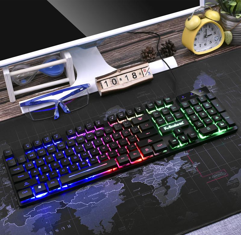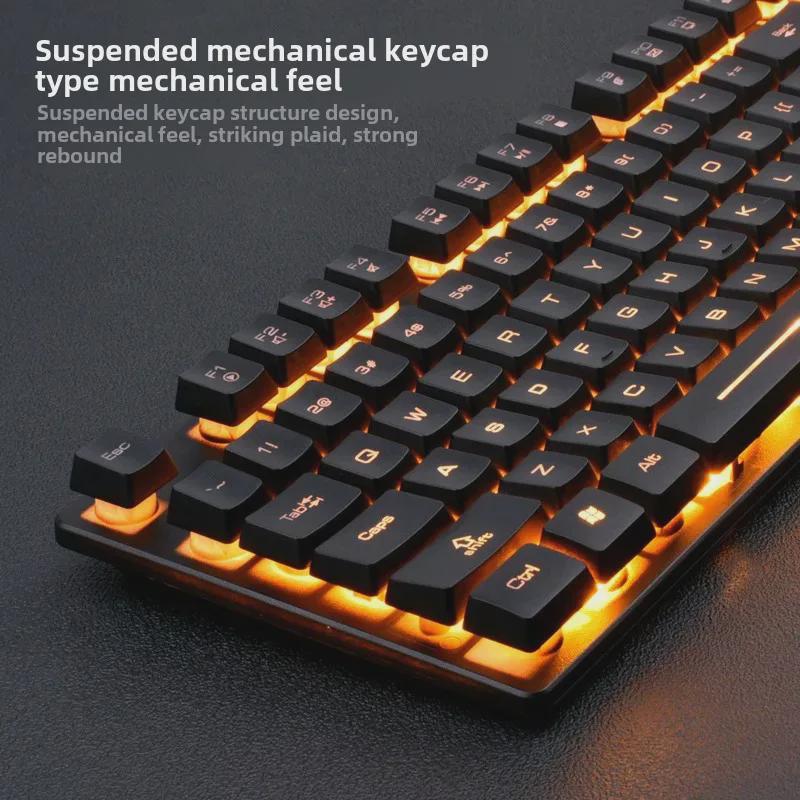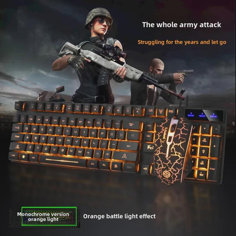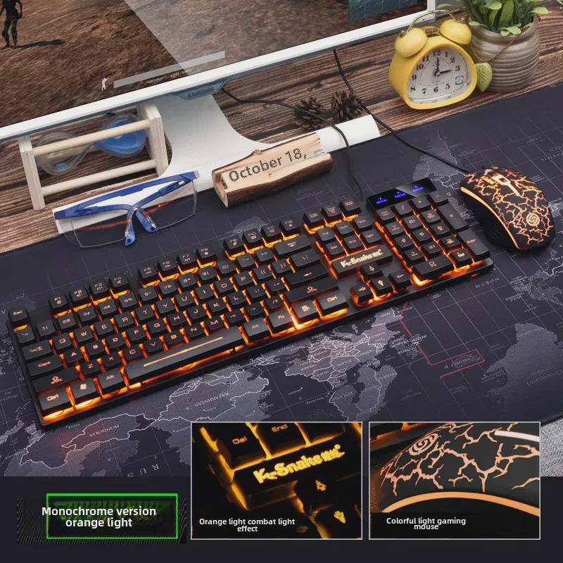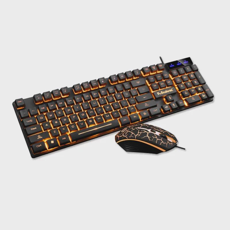 Комплект проводной плавающей клавиатуры и мыши Viper KM320 - оранжевый полупрозрачный игровой дизайн с трещинами