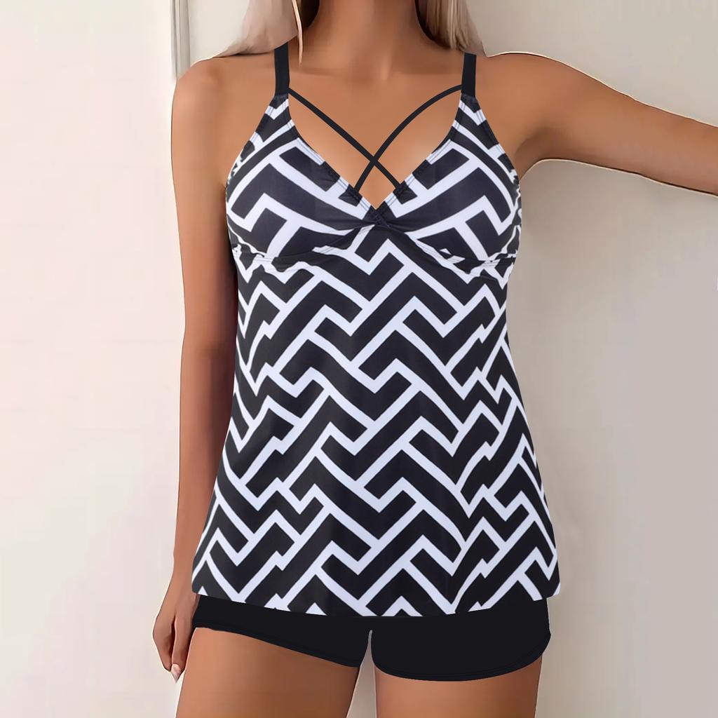 Женский модный купальник из двух частей, мягкий купальник с открытой спиной, комплект купальников, большой размер, принт, танкини, купальный костюм