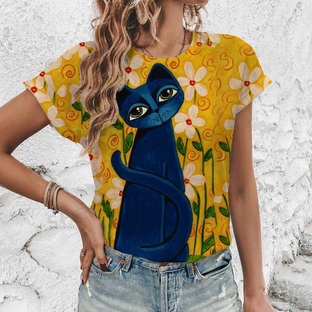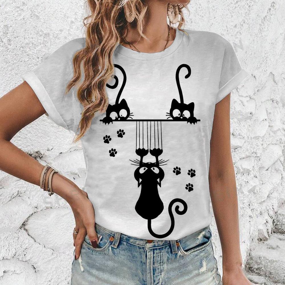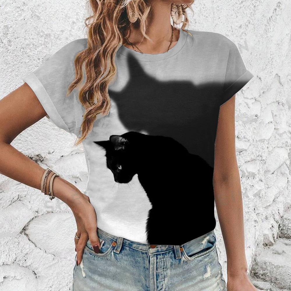 Женские футболки с 3D-принтом в виде мультяшного кота, милого животного, футболка Harajuku, повседневная футболка с коротким рукавом, O-образный вырез, женская одежда больших размеров
