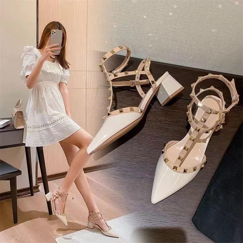 Женские летние 2024 римские сандалии с заклепками на толстом каблуке — стильные и уникальные