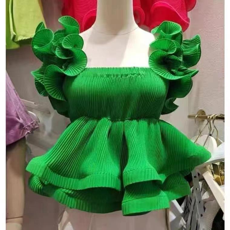 Жилет с оборками, майка, нарядная женская летняя короткая майка с приталенной талией