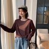 Новая однотонная базовая рубашка на осень и зиму для женщин, свободная повседневная футболка с длинными рукавами для женщин, корейская женская одежда, топы для пар