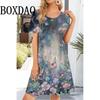 Платье с цветочным принтом 3D, женское, с круглым вырезом, коротким рукавом, трапециевидное, уличное, модное, повседневное, с узором Bufferfly, свободная одежда