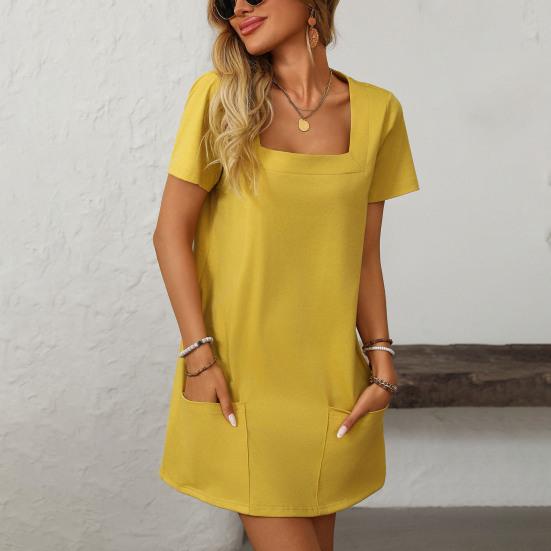 Дополните свой гардероб этим универсальным мини-платьем, которое легко сочетает в себе комфорт и стиль.. Это платье А-силуэта с короткими рукавами и квадратным воротником элегантно доходит до колена, создавая шикарный образ..