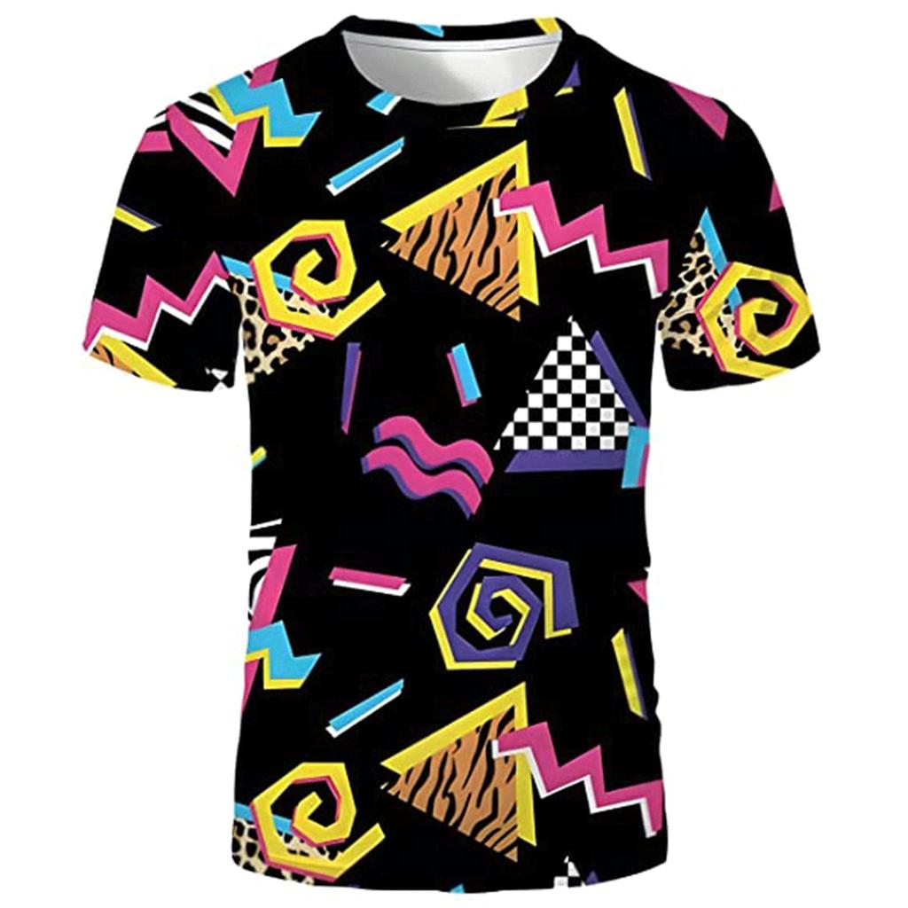 Хип-хоп короткие рукава 3D принт мужские футболки неоновый диско костюм для вечеринки свободные футболки Harajuku Y2k Top детская одежда