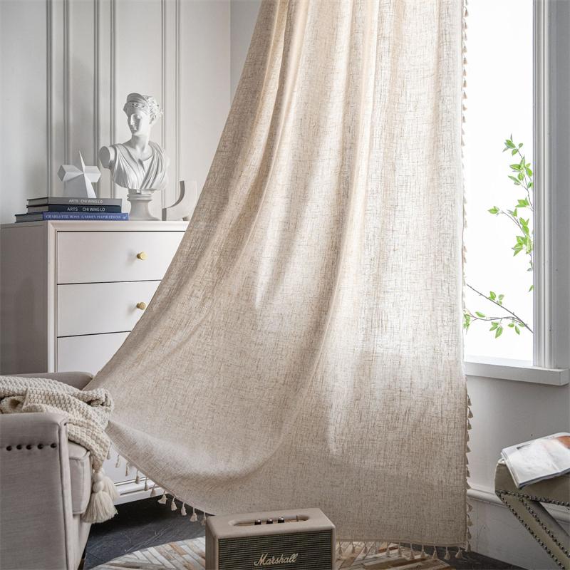 Роскошные шторы из смеси льна — однотонные текстурированные шторы для изысканных кухонь | Полупрозрачные шторы с бахромой ручной работы, сертифицированные OEKO-TEX