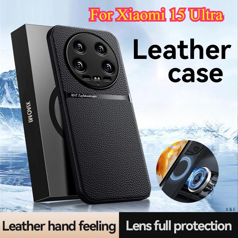 Автомобильный магнитный защитный чехол для Xiaomi 15 Ultra, кожаная текстура, силиконовый противоударный чехол для Xiaomi Mi 15 Pro 15Ultra 14T Pro