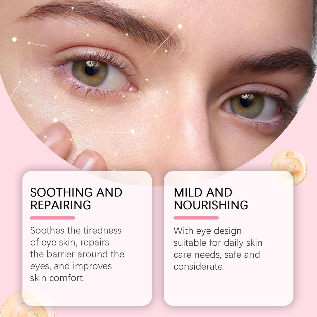 Его уникальная формула позволяет ему глубоко проникать в кожу и эффективно уменьшать мелкие морщины.. Осветлите тусклость вокруг глаз, осветлите тон кожи и сделайте глаза яркими и привлекательными.. Его применение простое: После очищения и кондиционирования лица возьмите небольшое количество крема для кожи вокруг глаз размером с фасоль мунг и согрейте его кончиками пальцев.. Затем равномерно нанесите средство на кожу вокруг глаз и аккуратно помассируйте от внешней стороны к внутренней до полного впитывания, не растягивая кожу.