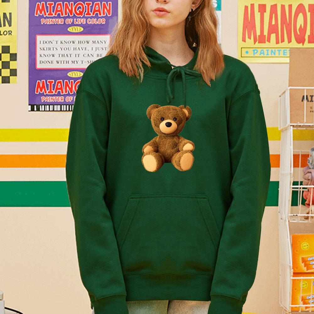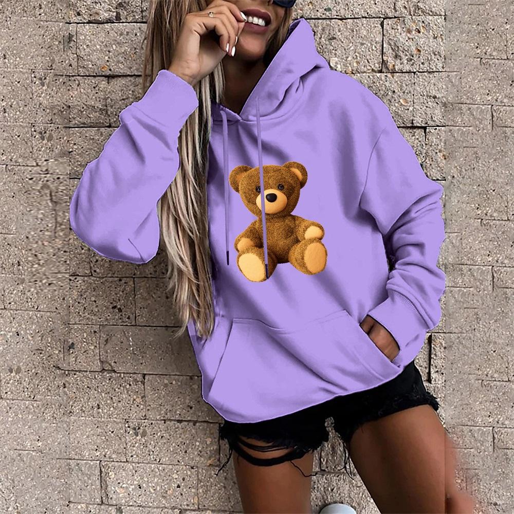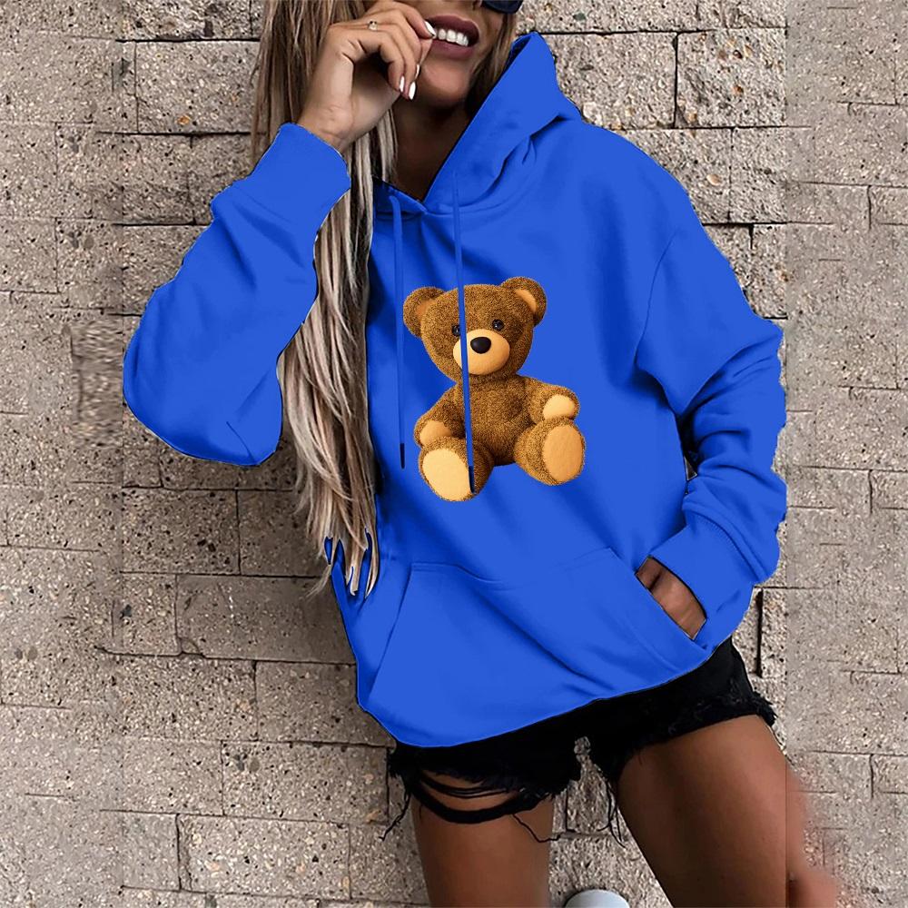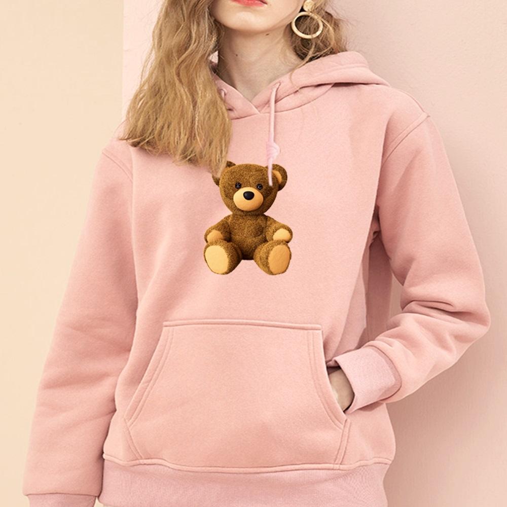 Осенние женские толстовки с длинным рукавом и круглым вырезом с милым принтом медведя, модные женские уличные повседневные топы для поездок на работу, одежда, пуловер, толстовка