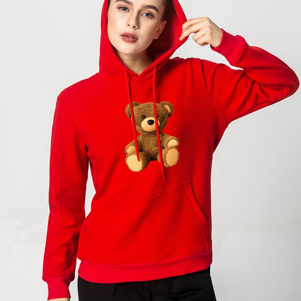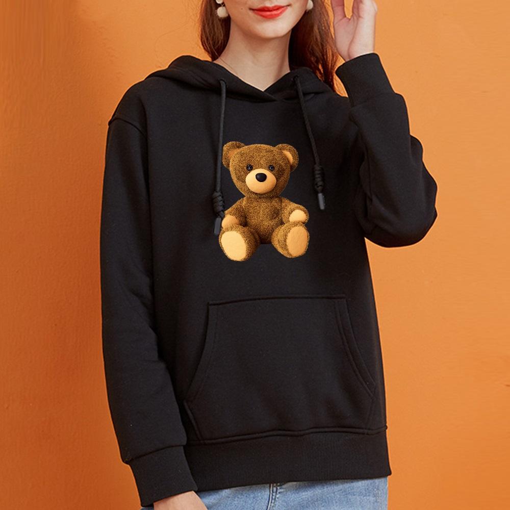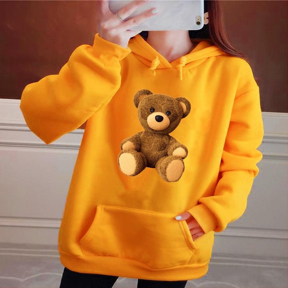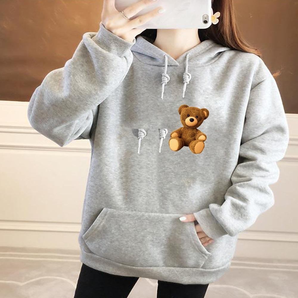 Осенние женские толстовки с длинным рукавом и круглым вырезом с милым принтом медведя, модные женские уличные повседневные топы для поездок на работу, одежда, пуловер, толстовка