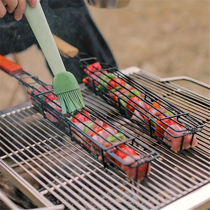 2 корзины для гриля с антипригарным покрытием и деревянными ручками - портативные металлические инструменты для гриля на древесном угле для овощей и мяса, идеально подходят для кемпинга на открытом воздухе
