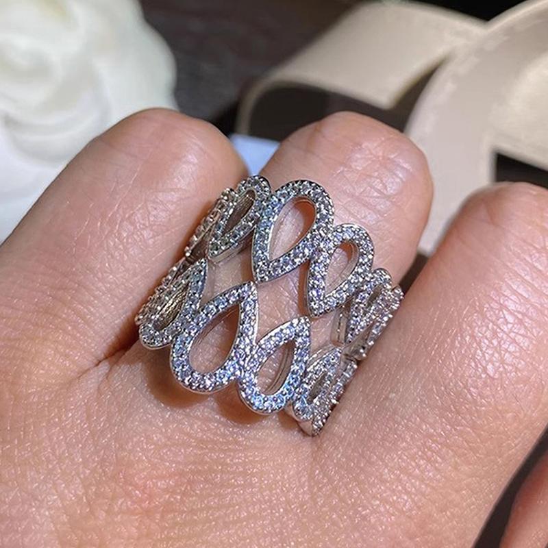 Кольца женские Huitan Hollow Waterdrop Design, новые роскошные цветные обручальные кольца, аксессуары, открывающиеся кольца, ювелирные изделия с фианитами