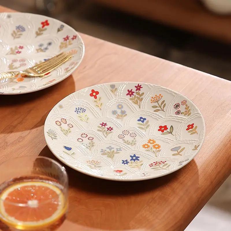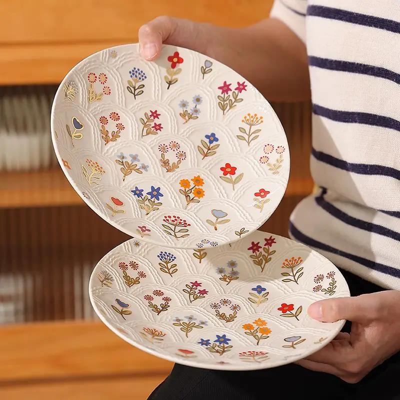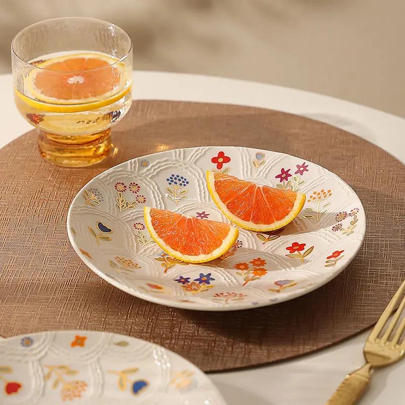 Керамическая рельефная тарелка, изысканная красивая обеденная тарелка, высококачественное блюдо для десерта в художественном стиле, домашний поднос для спагетти на завтрак