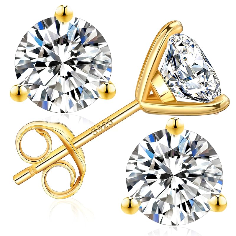 Серьги KRKC с муассанитом Мужские серьги/Женские серьги с 3 когтями, одна серьга из серебра 925 пробы Совместимо с аллергией на металлы Ювелирные изделия с бриллиантами и муассанитом