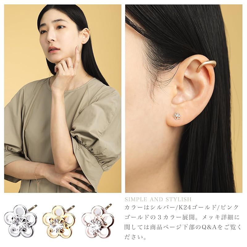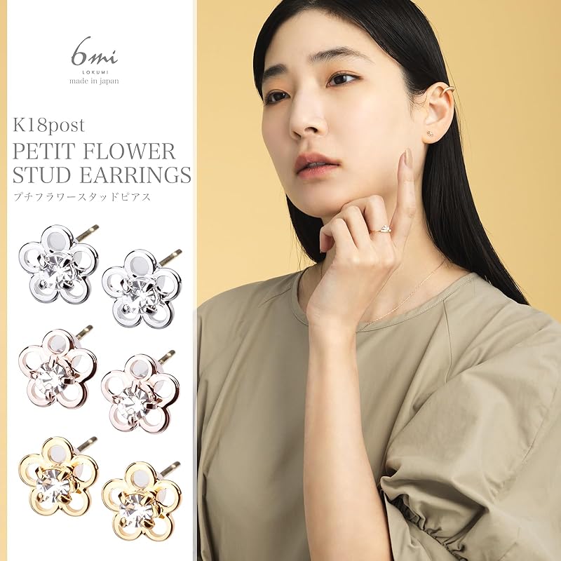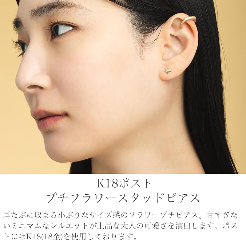 Серьги LOKUMI сделаны в Японии 18-каратное золото K18 пост K18 Совместимы с аллергией на металлы Маленький цветок для женщин простые Меньше Маленький размер 18-каратный цветок цветок