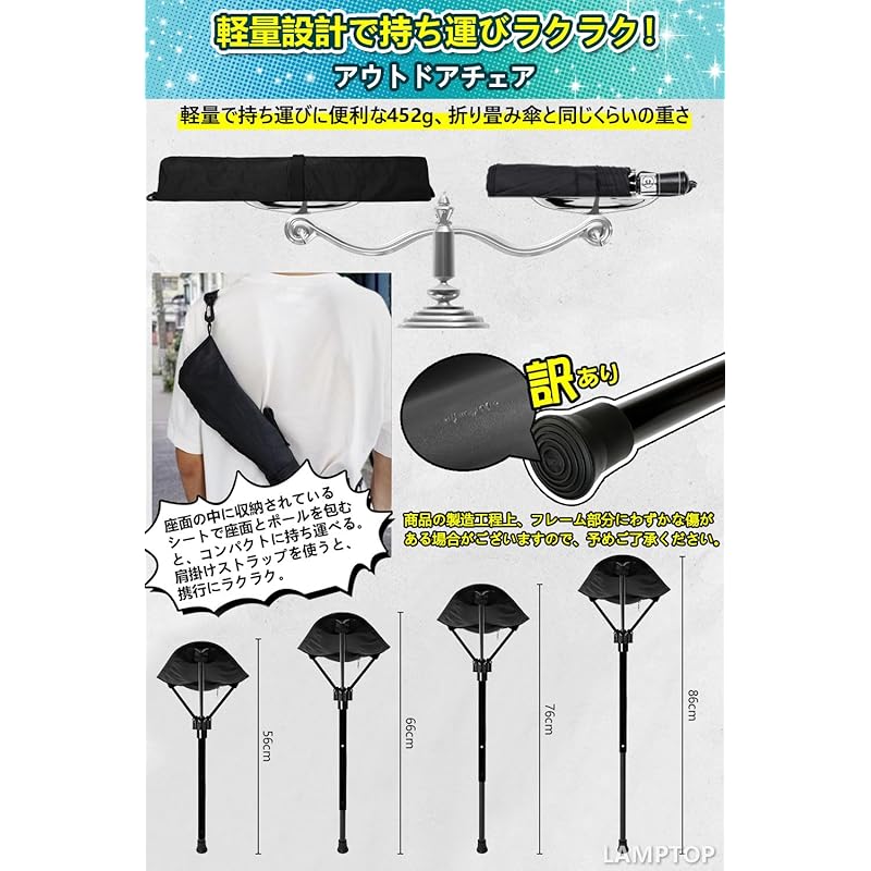 [Обязательно к просмотру для тех, кто работает стоя или смотрит гольф! ]Это переносной стул, который позволяет вам сидеть стоя, а его высоту можно регулировать на 4 уровнях.: 56/66/76/86 см, в зависимости от вашего предпочтительного роста и телосложения. Рекомендуется для людей, которые хотят сделать небольшой перерыв или работают в течение длительного времени!