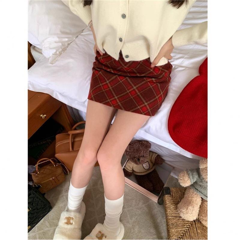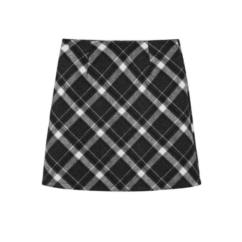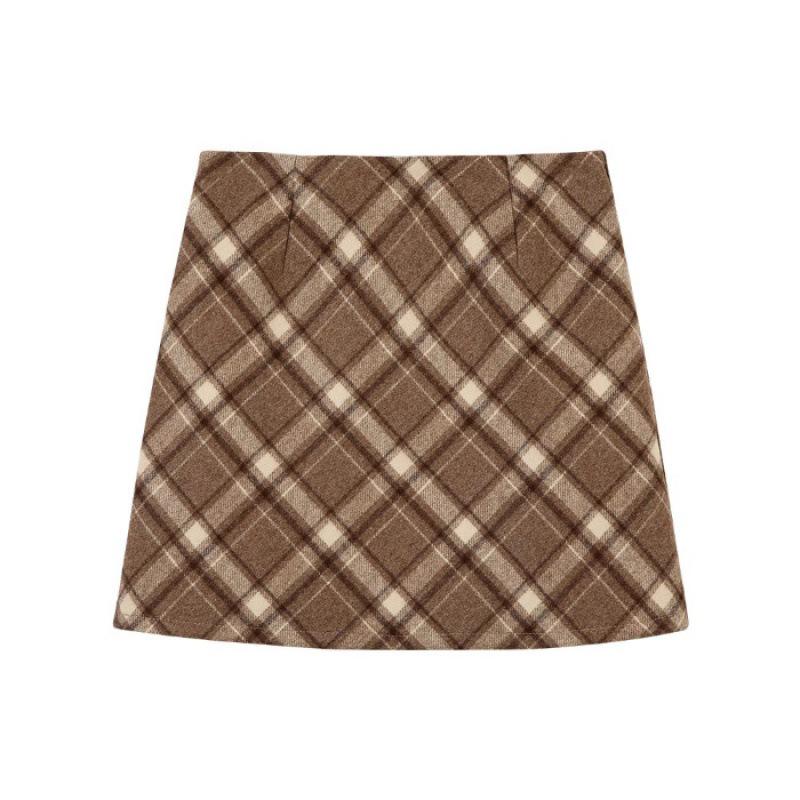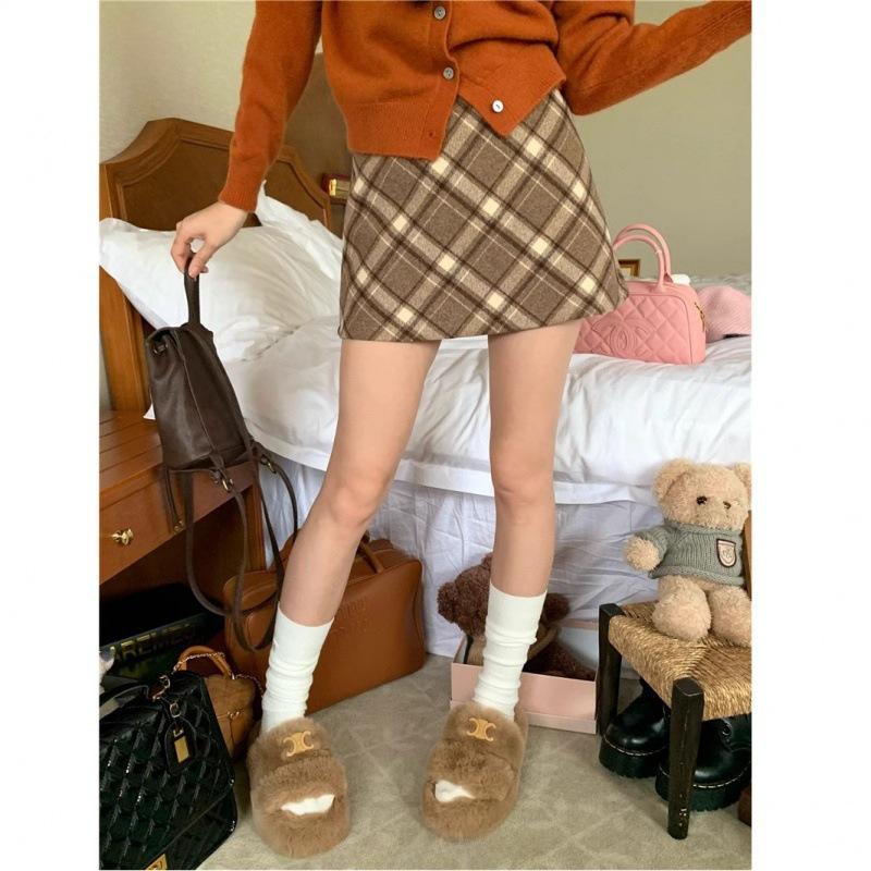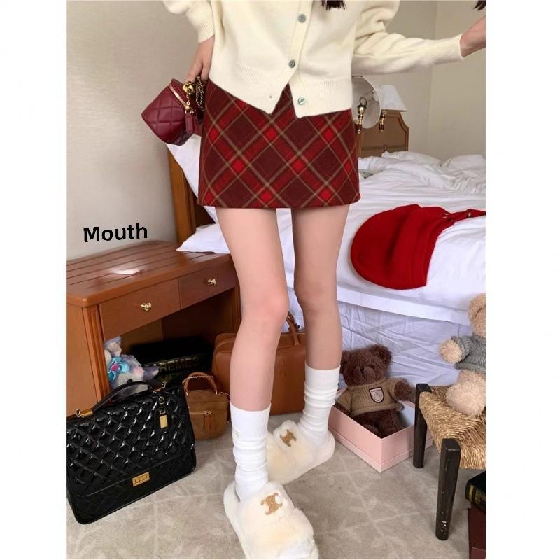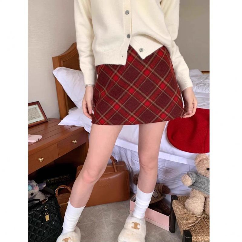 2024 Шерстяная клетчатая юбка А-силуэта с высокой талией для женщин