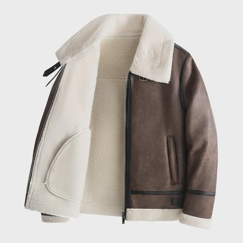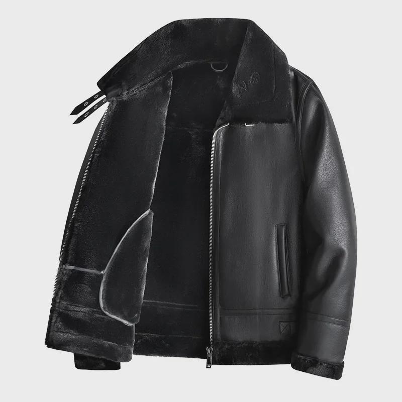 Мужская шуба из овчины 2024 года: Куртка из утолщенной кожи и бархата осень/зима