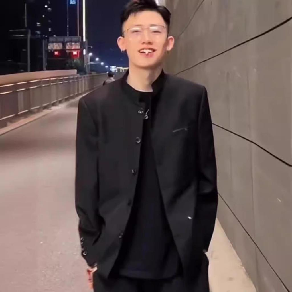 Мужской деловой повседневный пиджак с воротником-стойкой, однотонный, в стиле Тан