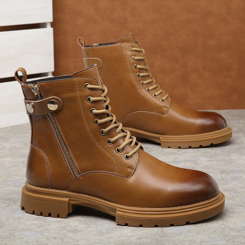 Ощутите идеальное сочетание стиля, комфорта и практичности в этих высоких кожаных мотоциклетных ботинках, разработанных специально для мужчин.. Эти ботинки с верхом из натуральной кожи отличаются прочностью и неподвластной времени привлекательностью.. Резиновая подошва обеспечивает отличное сцепление и устойчивость, что делает их идеальными для езды или ходьбы.. Внутренняя часть из теплого бархата сохраняет ноги в тепле в холодные осенние и зимние месяцы.. Эти ботинки с удобной боковой молнией легко надевать и снимать, а полиуретановая стелька обеспечивает амортизацию и поддержку при ношении в течение всего дня.. Более того, легкое увеличение высоты добавит дополнительную изюминку вашему стилю.. Благодаря подкладке из искусственной кожи эти ботинки выглядят современно и дополняют любой наряд.. Идеально подходит для тех, кто ценит одновременно моду и функциональность.