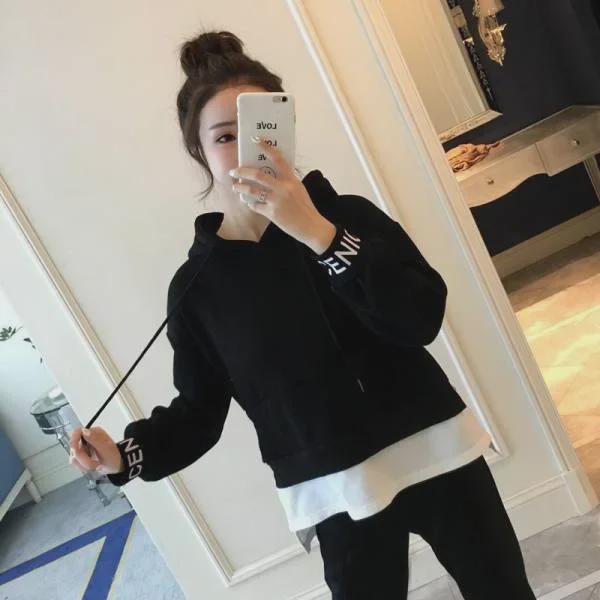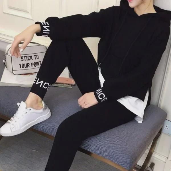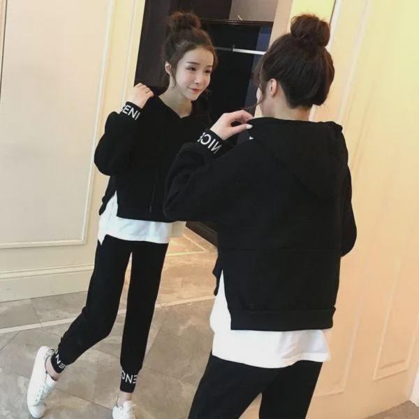 «Женский осенний корейский модный повседневный спортивный костюм-двойка»: Маленькие брюки и свитер"