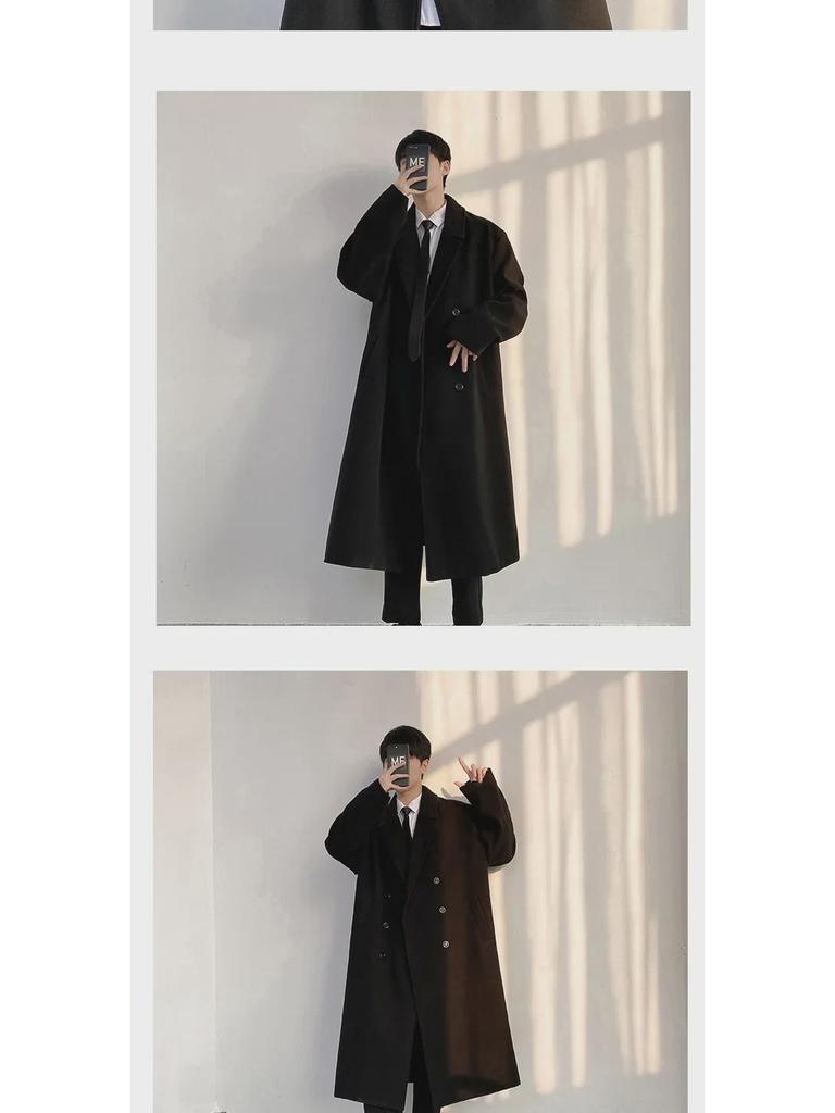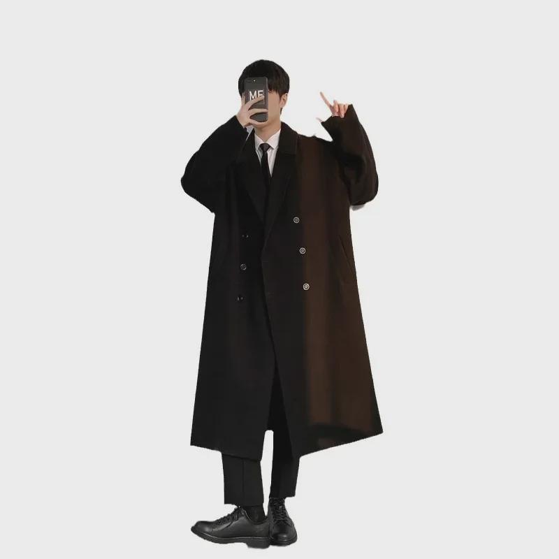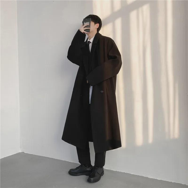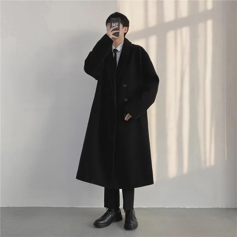 Мужское стеганое шерстяное пальто средней длины в корейском стиле