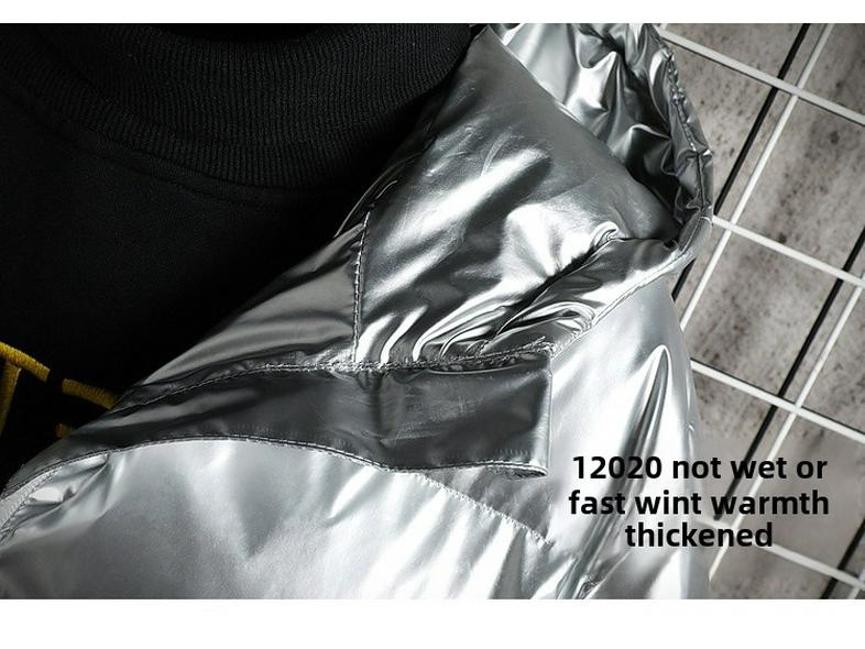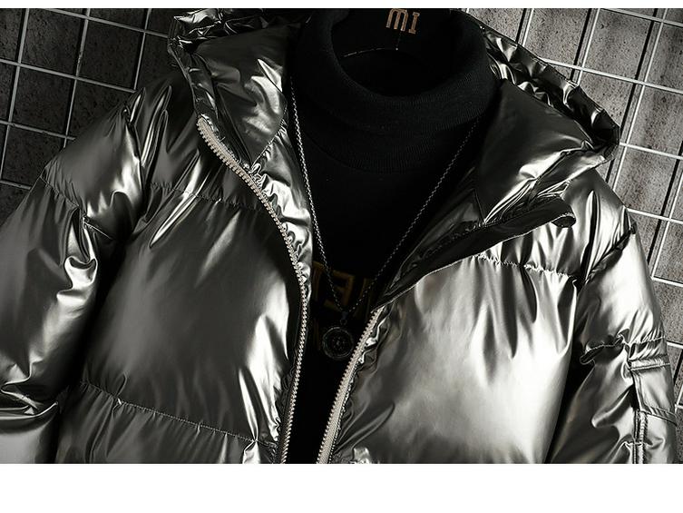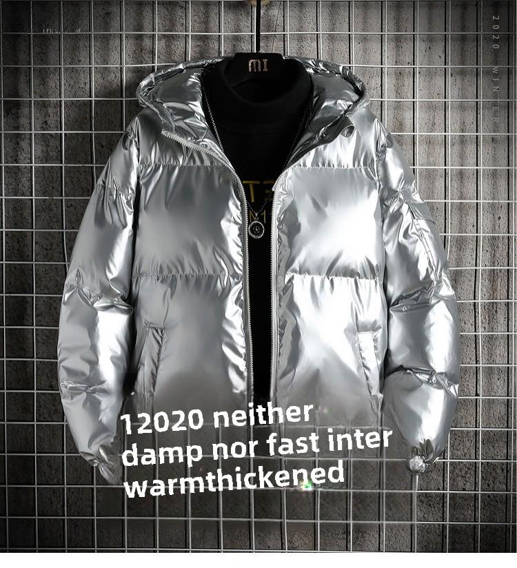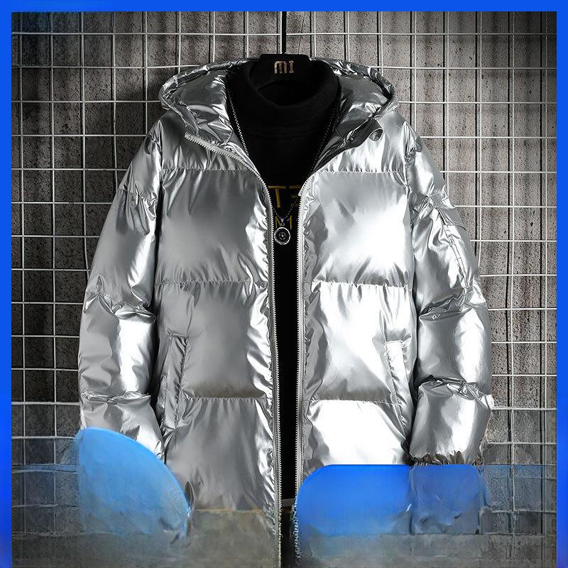 Мужская короткая куртка из блестящего хлопкового пуха с капюшоном — корейский стиль, модная, свободный крой, красивый дизайн.