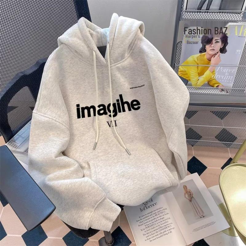 Мужской белый свитер с капюшоном: Осень/зима, свободный крой, бархат, корейский стиль BF, модный гонконгский дизайн.