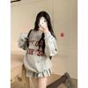 Женский серый зимний спортивный костюм в студенческом стиле со свитером и юбкой с высокой талией