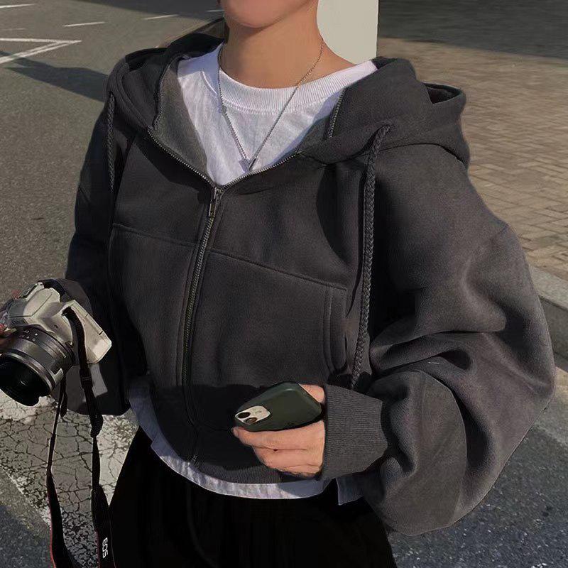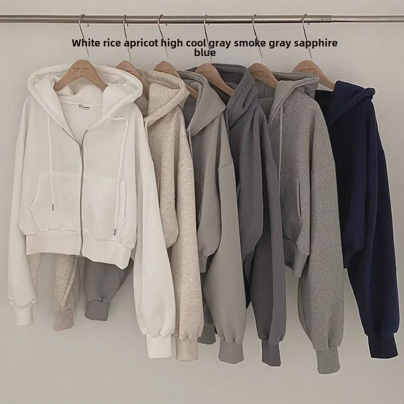 2024 Весна/Осень Женская бархатная облегающая толстовка с капюшоном на молнии