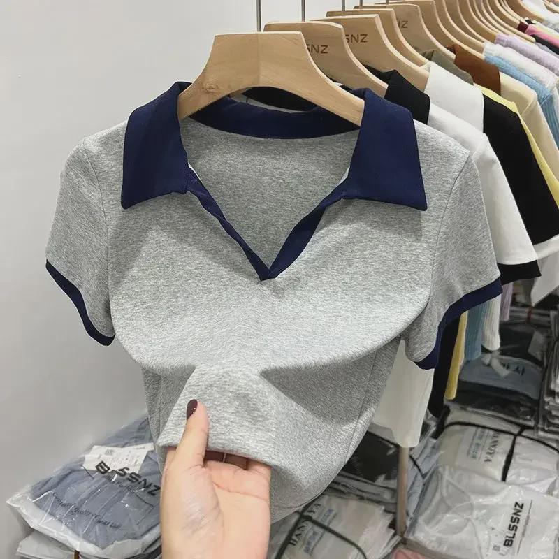 Трендовая европейская женская футболка-поло с коротким рукавом