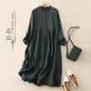 2025 г. Свободное платье-кардиган средней длины из стираного хлопка и льна с длинными рукавами и воротником-ушком из дерева — купить товар онлайн с бесплатной доставкой по всему миру!