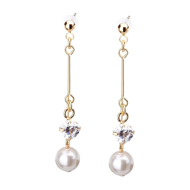 Серьги LOKUMI, изготовленные в Японии, 18-каратное золото, K18, столбик K18, совместимы с аллергиями на металл, жемчужные кубические гвоздики, женские, простые, популярные, бижутерия, длинные, большего размера