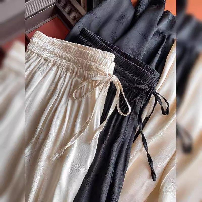 Дополните свой повседневный гардероб этими широкими свободными брюками, выполненными из роскошного искусственного шелка.. Двухцветный жаккардовый атласный рисунок добавляет нотку изысканности, а текстура ледяного шелка обеспечивает комфорт и воздухопроницаемость.. Эти брюки идеально подходят для любой непринужденной прогулки, они легко сочетают в себе стиль и удобство, создавая шикарный и изысканный образ, подходящий для разных случаев.