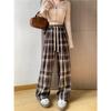Женские клетчатые брюки в стиле ретро с высокой талией и широкими штанинами — весна/лето 2024 г. в корейском стиле со шнуровкой
