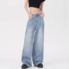 Женские джинсы широкого кроя в стиле «американский ретро» синего цвета с эффектом потертости — светлый цвет, свободный крой, коллекция весна/лето 2024.