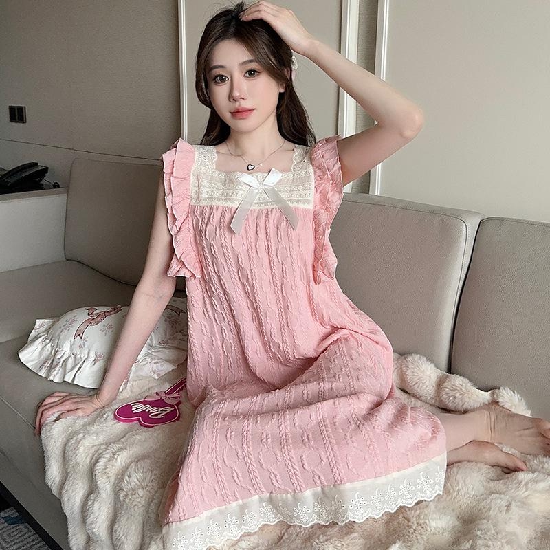 Милая женская летняя ночная рубашка с милыми рукавами-грибками, стиль «принцесса», средней длины и свободного кроя, подходит для ношения в помещении и на улице. — купить товар онлайн с бесплатной доставкой по всему миру!
