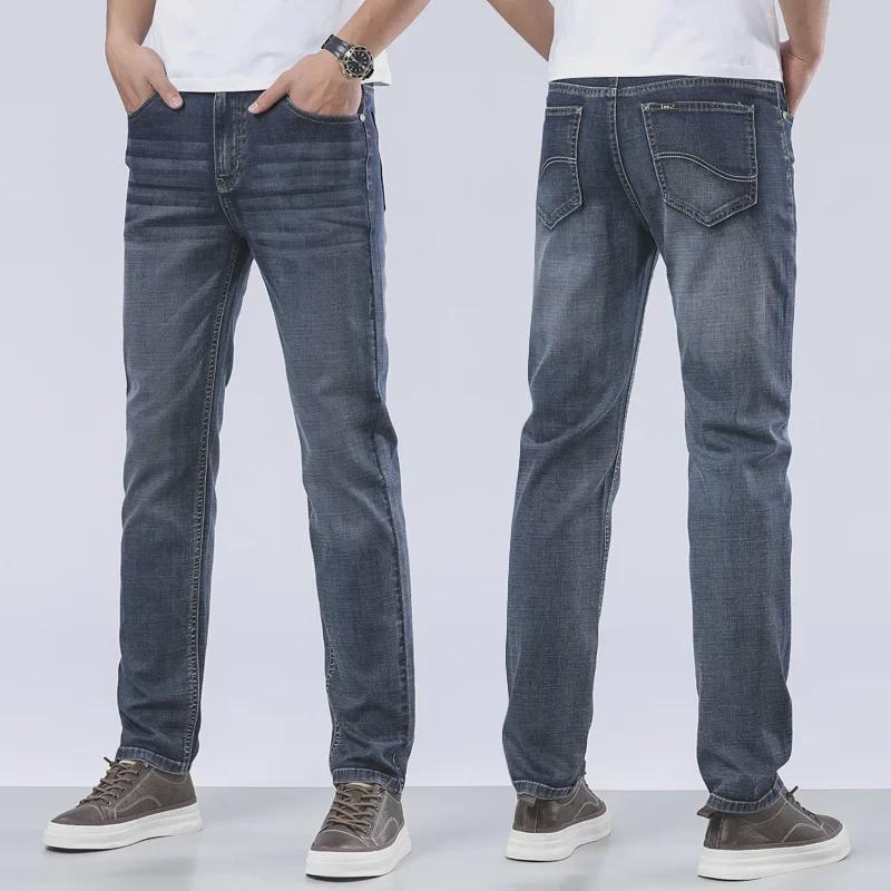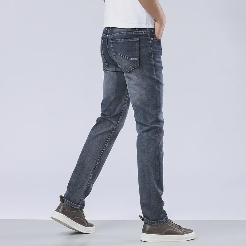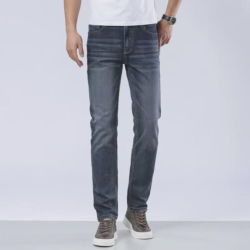 Мужские джинсы Li Le из хлопка прямого кроя с эластичной отделкой, ностальгического синего цвета