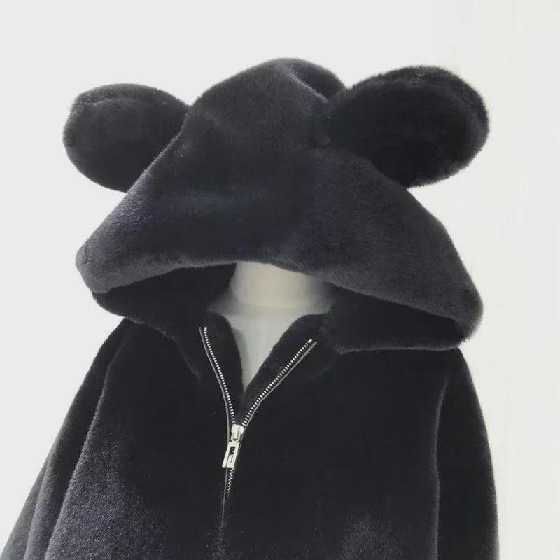 Женское зимнее плюшевое пальто из искусственного меха 2023 года с милыми медвежьими ушками