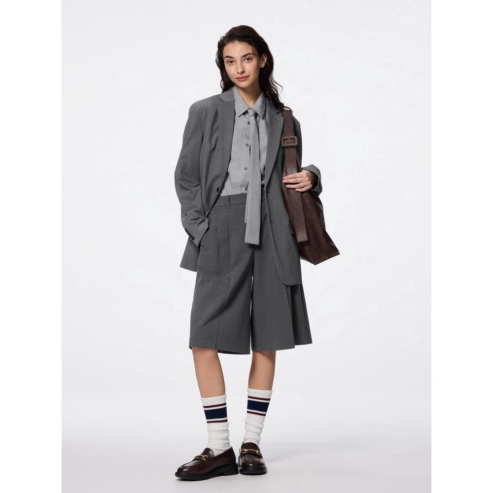 Шорты-бермуды GU NTQ+E изготовлены из твиловой ткани TR, которая обладает подходящей жесткостью и отличной эластичностью, а также устойчива к сминанию.. Центральная складка и силуэт А-силуэта добавляют очарования, а длина до колена визуально удлиняет ноги.. Этот продукт универсален как для традиционного, так и для повседневного стиля.