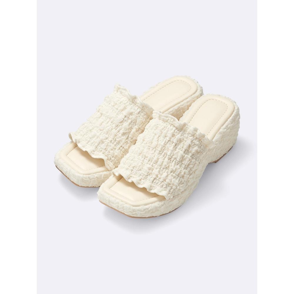 Представляем мюли GU Sharring Platform Mule — стильное дополнение к вашей коллекции обуви. Эти мюли, изготовленные из высококачественных материалов, имеют конструкцию на платформе, которая повышает как комфорт, так и стиль.. Верхняя часть изготовлена из 93% полиэстера и 7% полиуретана, а подошва изготовлена из синтетических материалов, включающих 33% переработанных материалов для обеспечения экологичности.