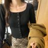 Женский облегающий вязаный кардиган - квадратный воротник, длинный рукав, короткая талия для осени/зимы — купить товар онлайн с бесплатной доставкой по всему миру!