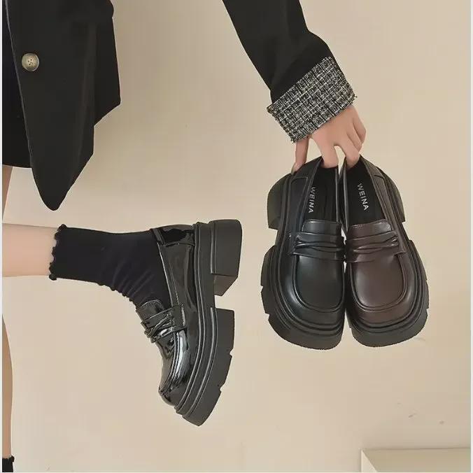 Новые черные туфли-лоферы Slip-On осень/зима 2023 года: Стильные кожаные туфли в студенческом стиле для женщин