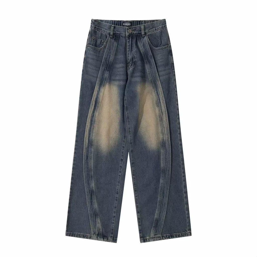 Мужские джинсы в стиле ретро, плотные, широкие - дизайнерская нишевая мода, длина до пола, свободный крой
